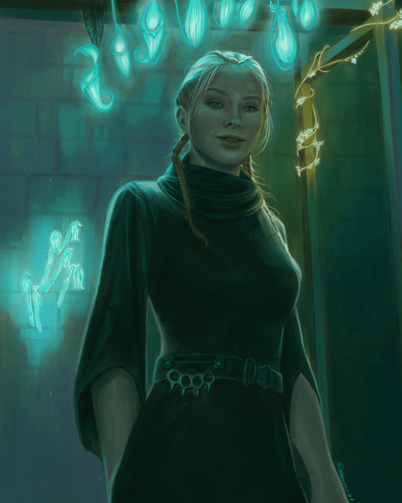 This is Najila, the last of my commissioned character art for Vicious Miscreations (for now). I just cannot get enough of this artist’s work. She is so talented at bringing my characters to life, and the world as well.